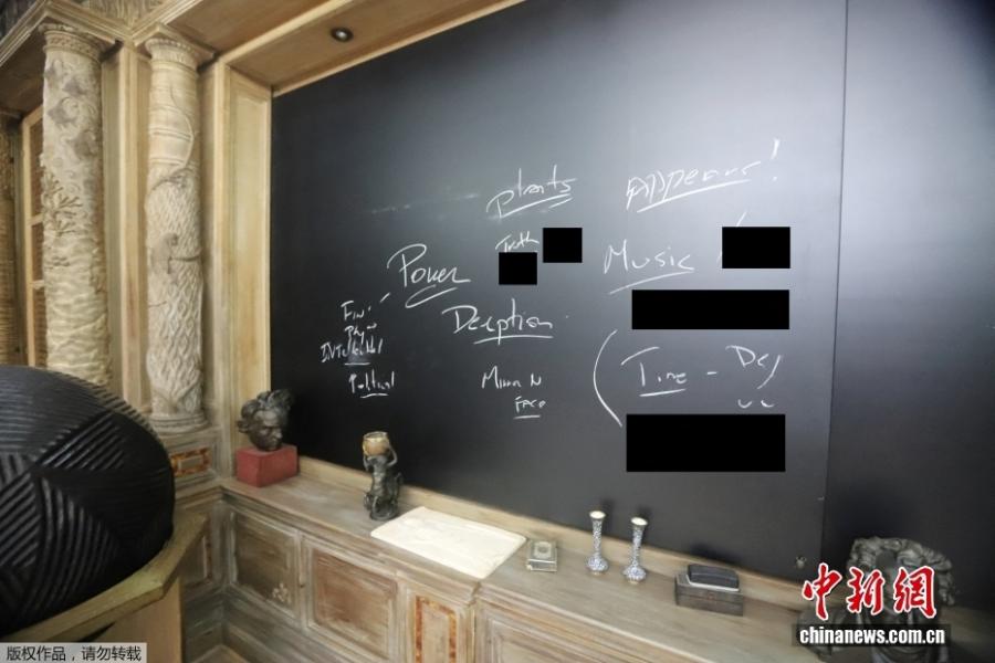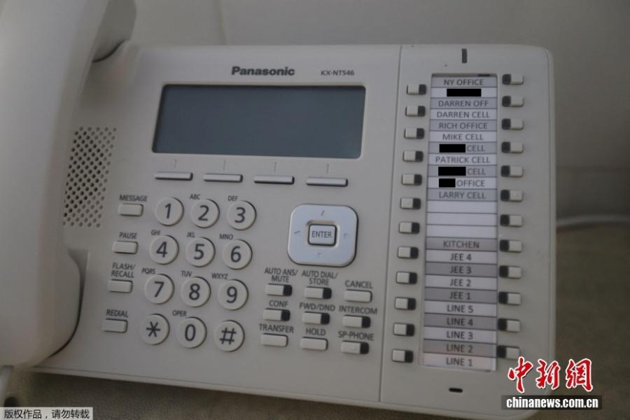 Photo shows a telephone with some information covered in Jeffrey Epstein’s home on the private Caribbean island, Dec. 3, 2025, local time. (Photo/Agencies)