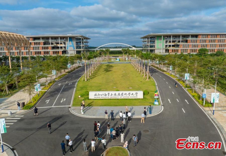 Overseas media representatives visit Hainan Bielefeld University of Applied Sciences in Yangpu Economic Development Zone, south China’s Hainan Province, Nov. 12, 2025. The university is the first independently run overseas higher-education institution in China and the first German public university established on the Chinese mainland. (Photo: China News Service/Luo Yunfei)