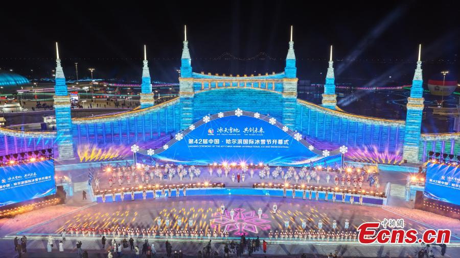 Harbin opens its 42nd Ice and Snow Festival at Harbin Ice-Snow World on Jan. 5, 2026, the world's largest ice and snow theme park and the city's signature tourist attraction. (Photo provided to China News Service)