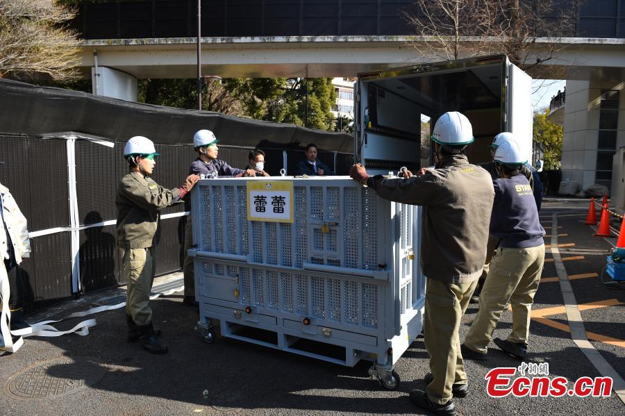A transport crate carrying giant panda Lei Lei is loaded onto a truck at Ueno Zoo in Tokyo, Jan. 27, 2026. (Photo provided by Tokyo Zoological Park Society)