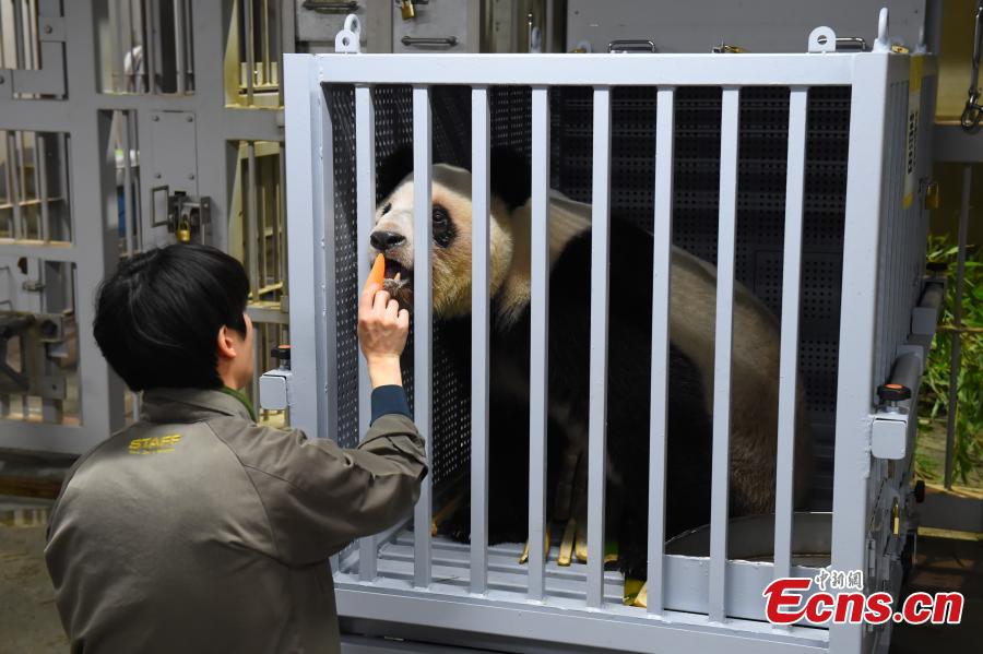 Xiao Xiao is seen eating before leaving Ueno Zoo in Tokyo, Jan. 27, 2026. (Photo provided by Tokyo Zoological Park Society)