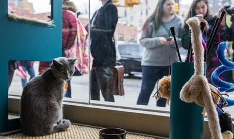 所有的猫咪由美国最大禁止杀戮动物救援和收养收容所"北岸动物联盟" 提供.普瑞纳宠物食品公司和北岸动物联盟合作打造了这个临时的猫咪咖啡馆.他们希望纽约很快能有永久性的猫咪咖啡馆.