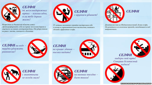 "Today technical advances do not stand still, but with all the advantages there are new challenges and threats," ministry official Yelena Alekseyeva told reporters during the campaign's launch on Tuesday. "Our booklet reminds you of how to take a safe selfie, so it is not the last one you will ever take."