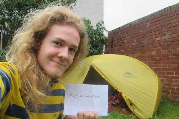 Evan Eames, 24, from Canada, asked strangers online if he could camp in their back gardens when he realised he could not afford to pay rent on top of international tuition fees for an Masters in Astrophysics at the University of Manchester.