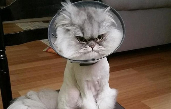 随着一张戴着脖圈的波斯猫的照片在网上迅速热传,照片中盛怒的喵星人也转眼成了一只网红.