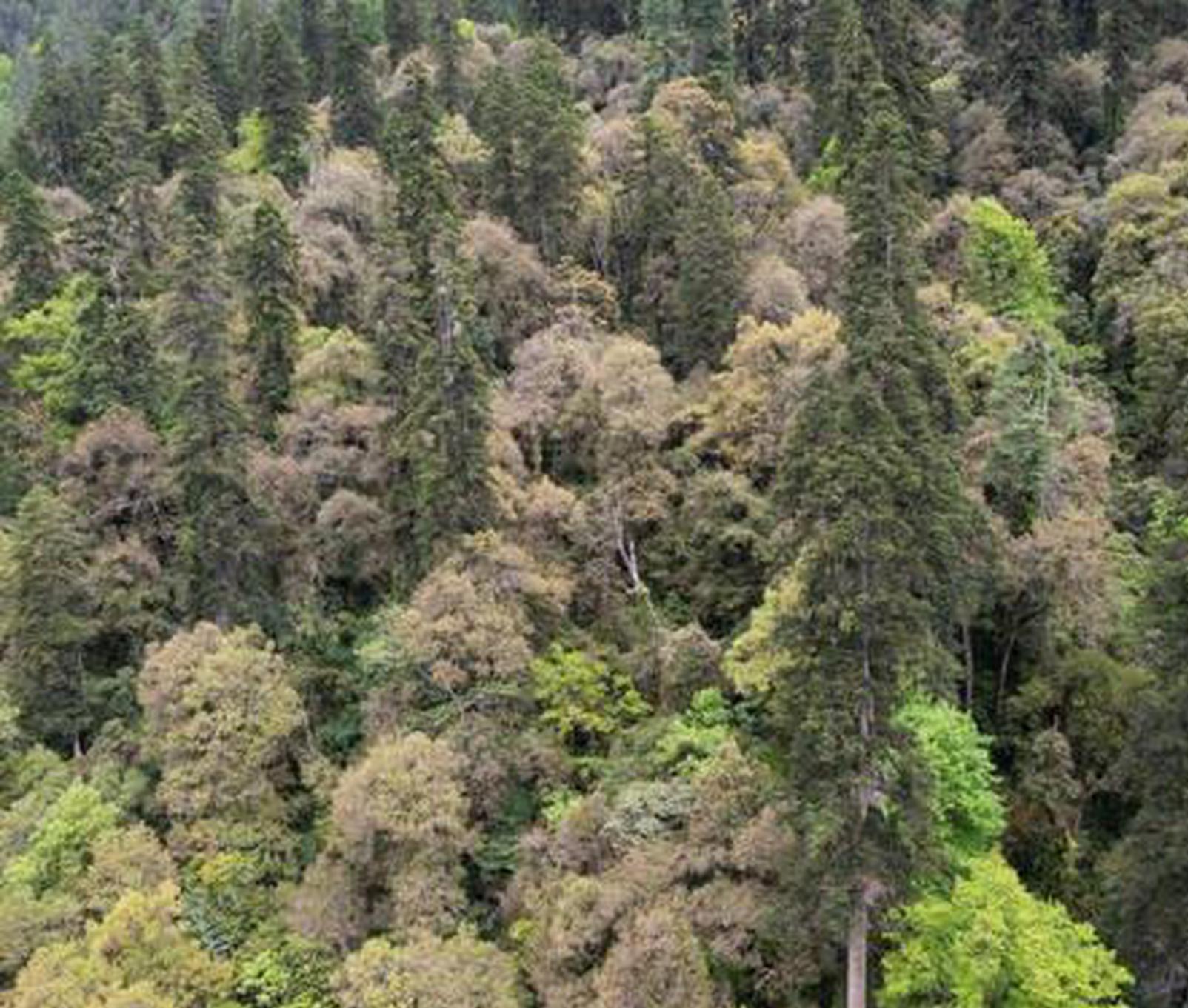 China's tallest tree with a height of 83.4 meters is found in Zayu County, Tibet Autonomous Region. (Photo/China News Service)