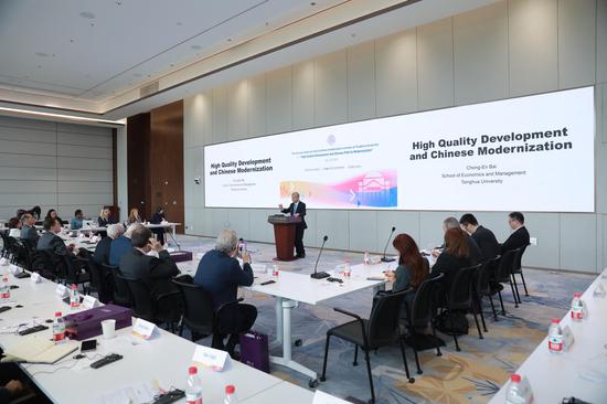 At the keynote speech, Bai Chong-En, Dean of the School of Economics and Management at Tsinghua University delivered a speech themed "High-Quality Development and Chinese Path to Modernization". Prof. Bai explained the new trend of China’s socioeconomic development and the importance of Chinese modernization to the world from four aspects - innovation- and synergy-based development, people-oriented development, green development and peaceful development.