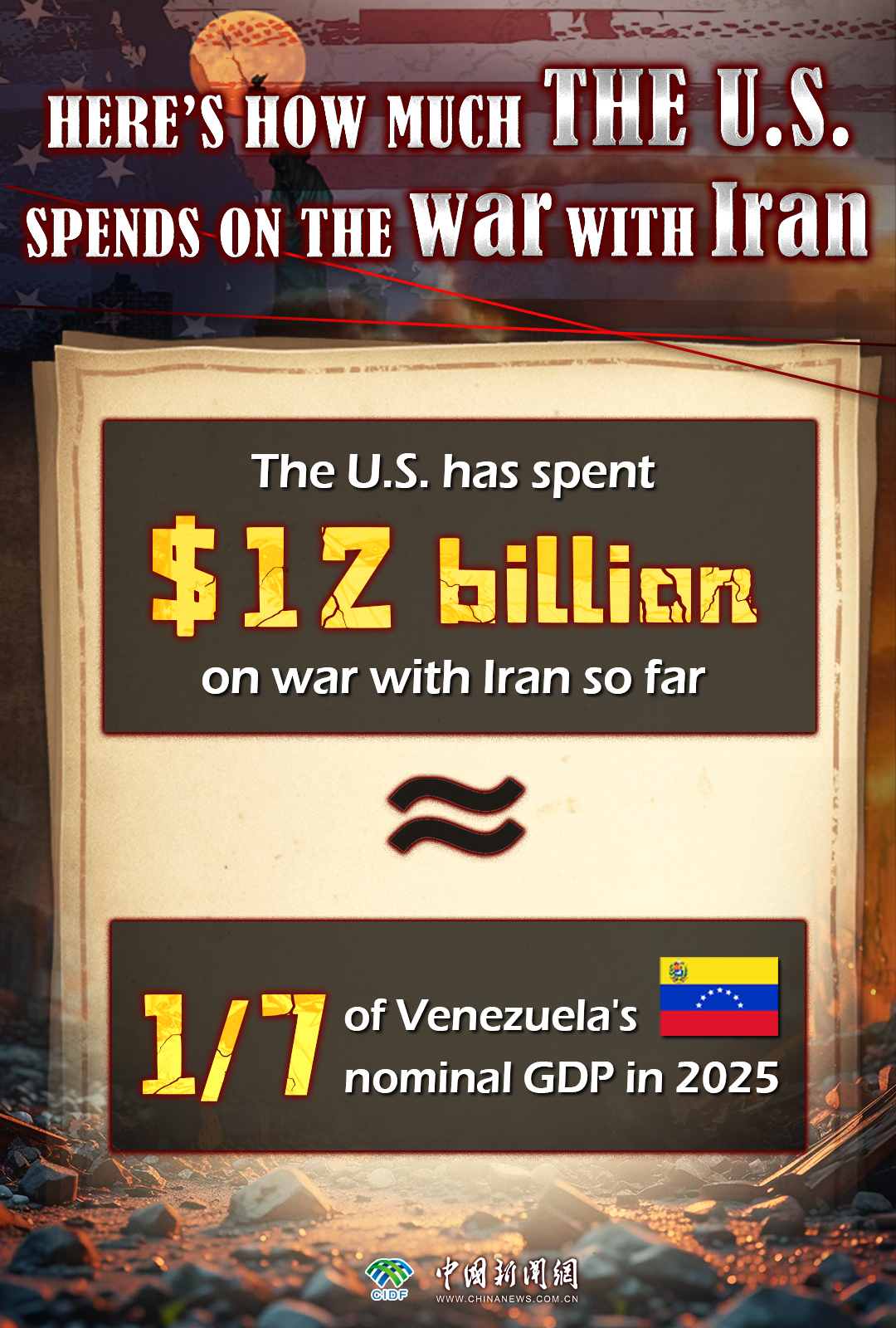 The U.S. National Economic Council Director Kevin Hassett revealed that the U.S. government has spent about 12 billion dollars on the war with Iran in just over two weeks of fighting.