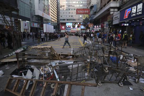"Hong Kong's interests and people's safety ... cannot be sacrificed due to mobsters' 'mutual destruction,'" the HKFTU said in a statement on Sunday night, calling on the HKSAR government to end violence and bring back peace to Hong Kong.
