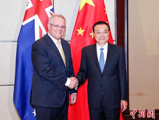 Li made the remarks in a meeting in Bangkok with his Australian counterpart, Scott Morrison, on the sidelines of a series of leaders' meetings on East Asian cooperation. Sunday's meeting was the seventh annual meeting between the two heads of government.
