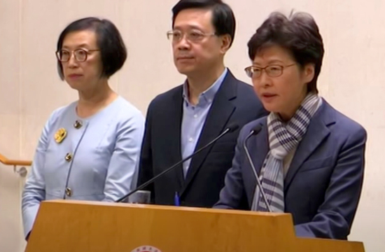 HKSAR Chief Executive Carrie Lam on Monday condemned violent protesters who are relentlessly destroying Hong Kong society and called for people to stay calm.