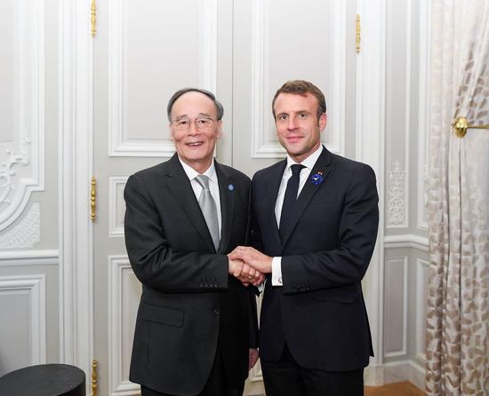 China is willing to work with France to implement the consensus of the heads of state of the two countries and push China-France and China-Europe relations to a new level, said visiting Chinese Vice President Wang Qishan.
