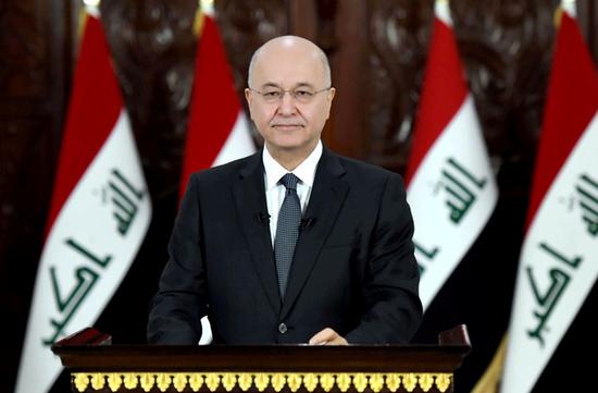 Iraqi President Barham Salih on Wednesday condemned the Iranian missile strikes on military bases housing U.S. forces in Iraq.