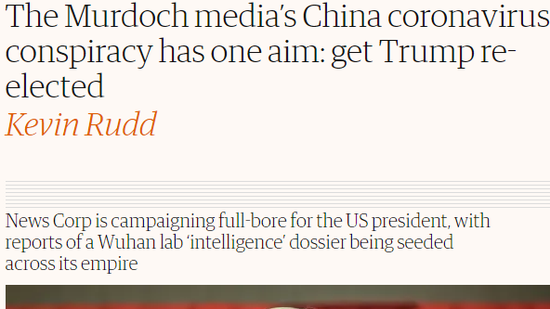 Kevin Rudd: Murdoch's media fans China coronavirus conspiracy to get Trump re-elected