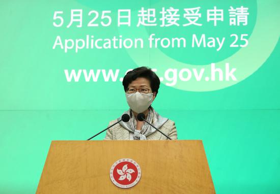 Chief Executive of Hong Kong Special Administrative Region Carrie Lam Cheng Yuet-ngor said the SAR government will take on its duty to safeguard national security and spare no efforts to cooperate with National People's Congress in national security law legislation.