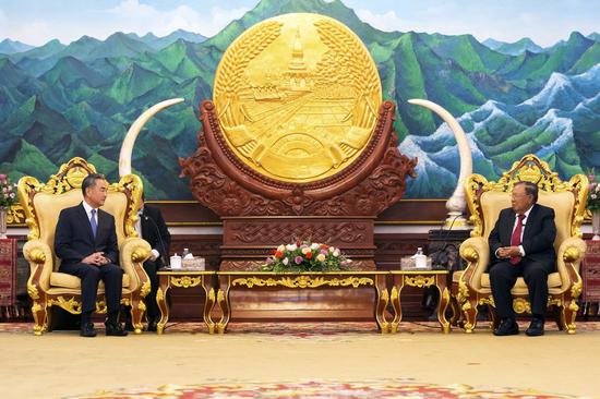 When meeting with Lao Prime Minister Thongloun Sisoulith on the same day, Wang said China appreciated Laos' strong support for China during its crucial moment of fighting the COVID-19 outbreak.