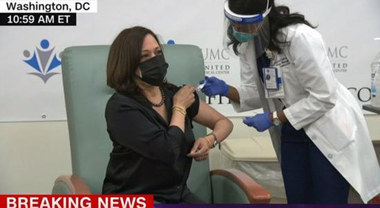 U.S. Vice President-elect Kamala Harris received the first dose of COVID-19 vaccine Tuesday live on television.