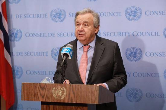 United Nations Secretary-General Antonio Guterres on Monday expressed his deep concern over Russia's decision on the status of Donetsk and Lugansk of Ukraine.