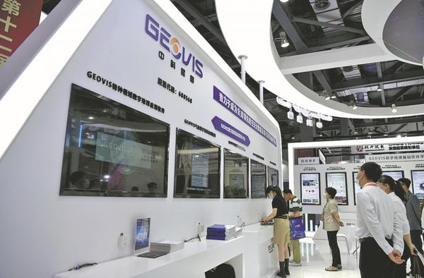A view of the booth of Geovis Technology Co Ltd during an expo in Nanchang, Jiangxi province. CHINA DAILY