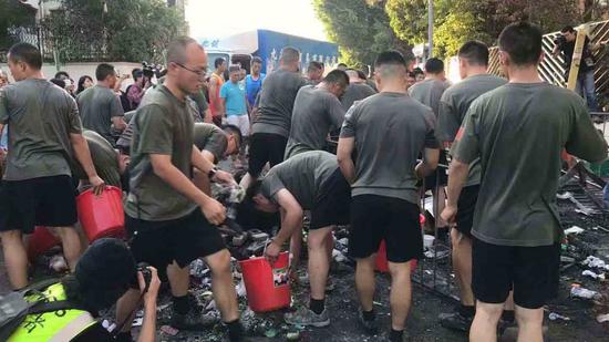 Confirming the deployment in a Weibo post on Saturday night, the PLA garrison said officers joined residents who were cleaning up roads near Kowloon Tong barracks at around 4:20 p.m. and won "applause from residents" in the process.