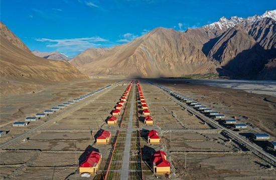 Combo aerial photo shows locals' place of residence before relocation on July 8, 2019 (top) and a resettlement housing site for locals on July 4, 2019 (bottom) in Tajik Autonomous County of Taxkorgan, northwest China's Xinjiang Uygur Autonomous Region. (Xinhua/Hu Huhu)