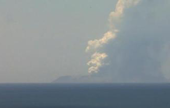 The eruption began about 2:30 p.m. local time (0130 GMT) on the island, about 50 kilometers from the east coast of North Island, spewing smoke and debris into the air.