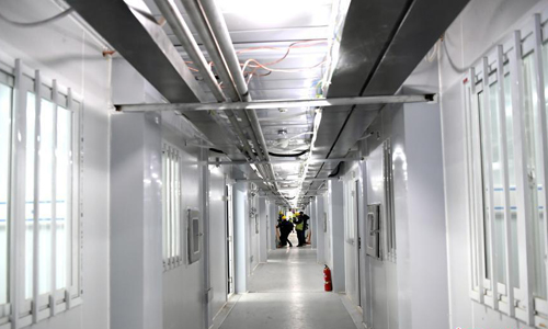The temporary hospital consists of a medical isolation zone, a living zone for medical staff and a logistics area. It can accommodate 1,500 patients after its completion.