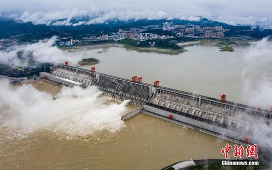 The massive dam is in Yichang, central China's Hubei Province. Before every flood season, its reservoir releases water to ensure enough storage capacity. When the deluge comes, the dam will impound water to whittle down the flood, thus protecting downstream cities and villages.