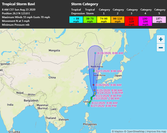 China's national observatory on Sunday renewed a blue alert for Typhoon Bavi, which is expected to bring gales to south and southeast China.
