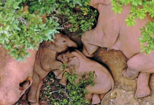 The roaming elephants rest in Eshan county, Yunnan. [Provided to China Daily]