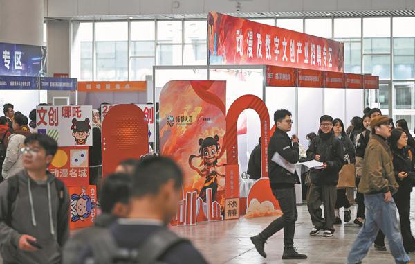 Feng Mingjin, general manager of Chengdu Yunshang New Audiovisual Culture Technology Co, told Sichuan Daily on Sunday at the 2025 Chengdu spring job fair in Sichuan province that "Ne Zha fever" has significantly increased demand for talent in the digital cultural and creative sector.