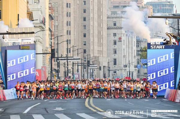 On Sunday morning, over 23,000 runners embark from the Bund to participate in the 2025 Shanghai Marathon along the 42.195-kilometer course. (Photo provided to chinadaily.com.cn)