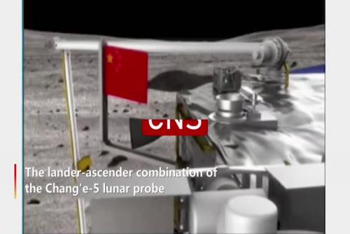 (ECNS) -- The lander-ascender combination of the Chang'e-5 lunar probe erected a small Chinese national flag before the ascender was launched Thursday.