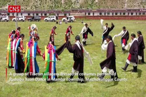 (ECNS) -- A group of Tibetan villagers dressed in costumes performed Puduiba Xuan Dance in Mamba Township, Maizhokunggar County.