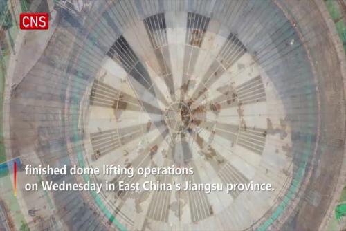 (ECNS) -- The world's three largest liquefied natural gas storage tanks, currently under construction by China National Offshore Oil Corp, finished dome lifting operations on Wednesday in East China's Jiangsu province.