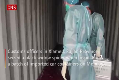 Customs officers in Xiamen, East China's Fujian province seized a black widow spider when inspecting a batch of imported car containers on Monday.