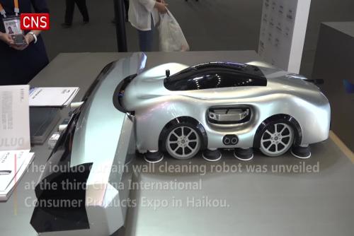 A curtain wall cleaning robot was unveiled at the third China International Consumer Products Expo in Haikou, capital city of south China's Hainan Province on Thursday.