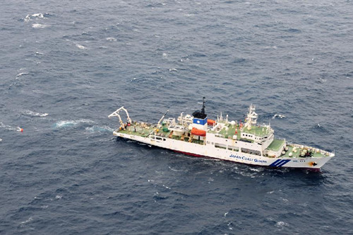 Photo provided by China Marine Surveillance shows a Japanese vessel carrying out illegal surveillance activities in China's territorial waters on Feb. 19, 2012. Chinese maritime law enforcers recently identified and expelled two Japanese boats that were caught carrying out illegal surveillance activities in China's territorial waters, maritime authorities said Tuesday. Routine patrols by China Marine Surveillance officers discovered two Japan Coast Guard survey boats in the East China Sea late Sunday. The survey boats left the waters after receiving a warning from the Chinese patrols, according to the State Oceanic Administration (SOA) and China Marine Surveillance. (Xinhua)