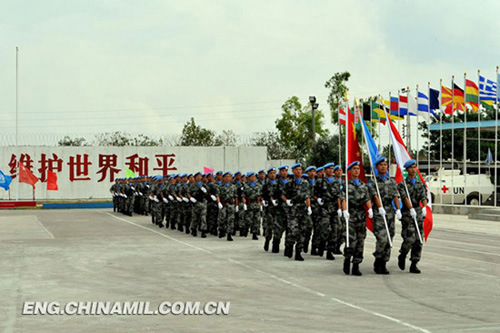 The rotation and handover ceremony of the Chinese peacekeeping engineer battalions to Lebanon was held at the Chinese barracks in Haniya Village in south Lebanon on the morning of June 25, 2012, local time. (China Military Online/Yang Liming)