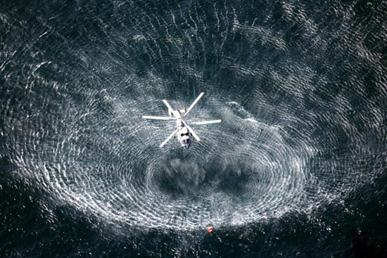 A helicopter tries to save a fisherman during a joint exercise by civilian maritime authorities and the People's Liberation Army Navy in the East China Sea on Friday. [Zhang Lei / For China Daily]