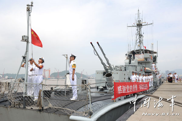 The retirement ceremony for the Chinese submarine chaser "Hai'an" (hull number 650) was held at a naval port in Zhoushan, east China's Zhejiang province, on the morning of July 16, 2014, marking that the "Hai'an" ship, which has been in service for 33 years, is now officially decommissioned.