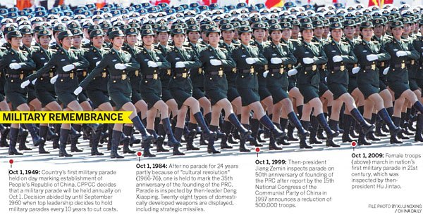 The parade, which will probably be held in September, will be the first such event in the capital since Xi took office and will mark a rare departure from the practice of staging parades every five or 10 years on Oct 1, China's National Day.