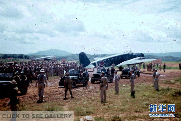 The color pictures show Japanese in cars on their way to surrender after landing at Zhijiang Airport and surrender scenes in east China's Gaoyou City.