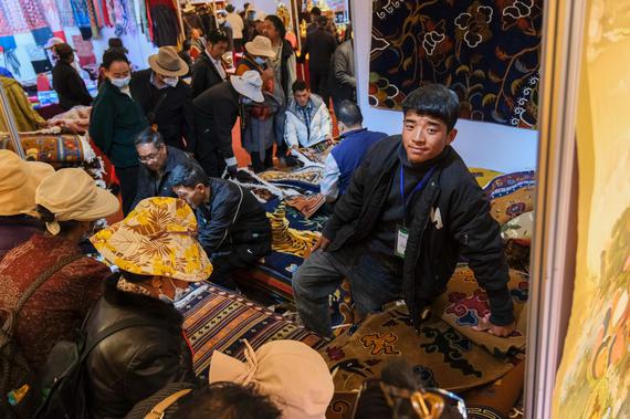 This technology allows them to customize Tibetan carpet based on photos customers provide. Their goal is to integrate modern and diverse elements into Tibetan rugs to attract buyers, he said.