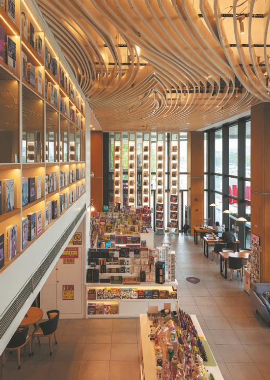 Visitors read at the Dayin Bookmall in Lin-gang, which is the area's first cultural reading space. (CHEN LI/FOR CHINA DAILY)