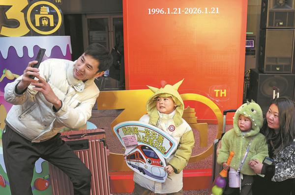 A traveler captures a family photo at Beijing West Railway Station on Wednesday. This landmark hub reflects the rapid development of China's railway network. Photo/China DailyBeijing West Railway Station, which marked its 30th anniversary on Wednesday, has transformed from a "local gateway" handling about 8 million passenger trips annually in 1996 into a bustling transportation hub that served more than 65 million passengers in 2025.