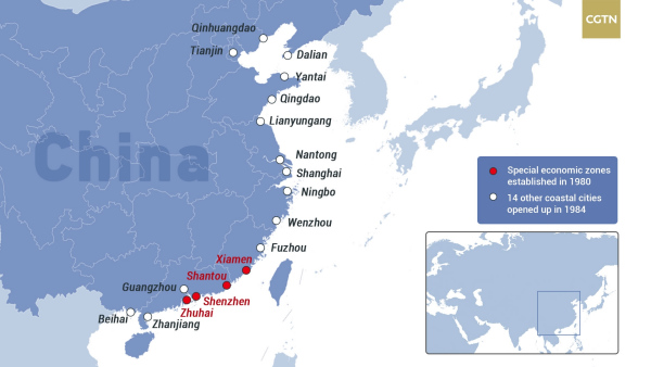 In 1980, the CPC Central Committee and the State Council decided to name four southern China cities, namely Shenzhen, Zhuhai, Shantou and Xiamen, as special economic zones of the country. The establishment of these economic zones marked the further development of China’s opening up.