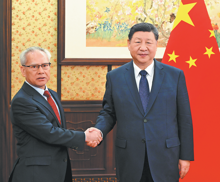 President Xi meets with Chief Executive of the Macao Special Administrative Region Sam Hou-fai in Beijing on Tuesday. Sam is also on a duty visit to Beijing. (YAN YAN/XINHUA)