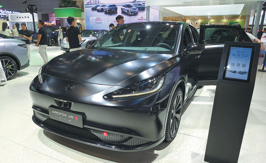 BAIC Arcfox showcases the Alpha S sedan at the Guangdong-Hong Kong-Macao Greater Bay Area International Auto Show in Shenzhen in July 2024. LIANG XIASHUN/FOR CHINA DAILY