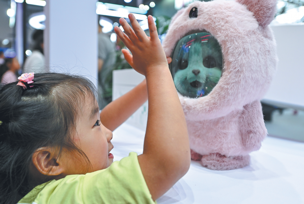 A child interacts with a robot designed for electronic companion during the World Smart Industry Expo 2025 in Chongqing on Sept 6.Photo/CHINA NEWS SERVICEIn the morning, the microwave oven recognizes what's inside, recommends a recipe and fine-tunes the cooking time automatically. Step outside, directions are no longer confined to a phone screen — they appear seamlessly in your field of view through AI glasses.